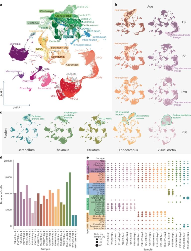 The researchers discovered, for instance, that for a lot of genes essential in neuron-to-neuron signaling, the identical cell sort expressed totally different mRNA isoforms in numerous mind areas. Variation was much more pronounced throughout adolescence when many isoforms exhibited surprising patterns of fluctuation.