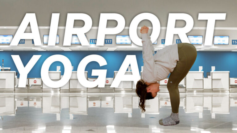 Yoga at the airport! The perfect practice for traveling! Treat the usual suspects, the neck, shoulders, lower back, hips, hamstrings and feet – those tight areas of the body that hurt with travel. You can do it standing or sitting. The best 13 minutes you will spend at the airport. Refresh your energy and mood, find what feels good about your body in preparation for the trip, or in the middle! Make self-care cool, I know you will!